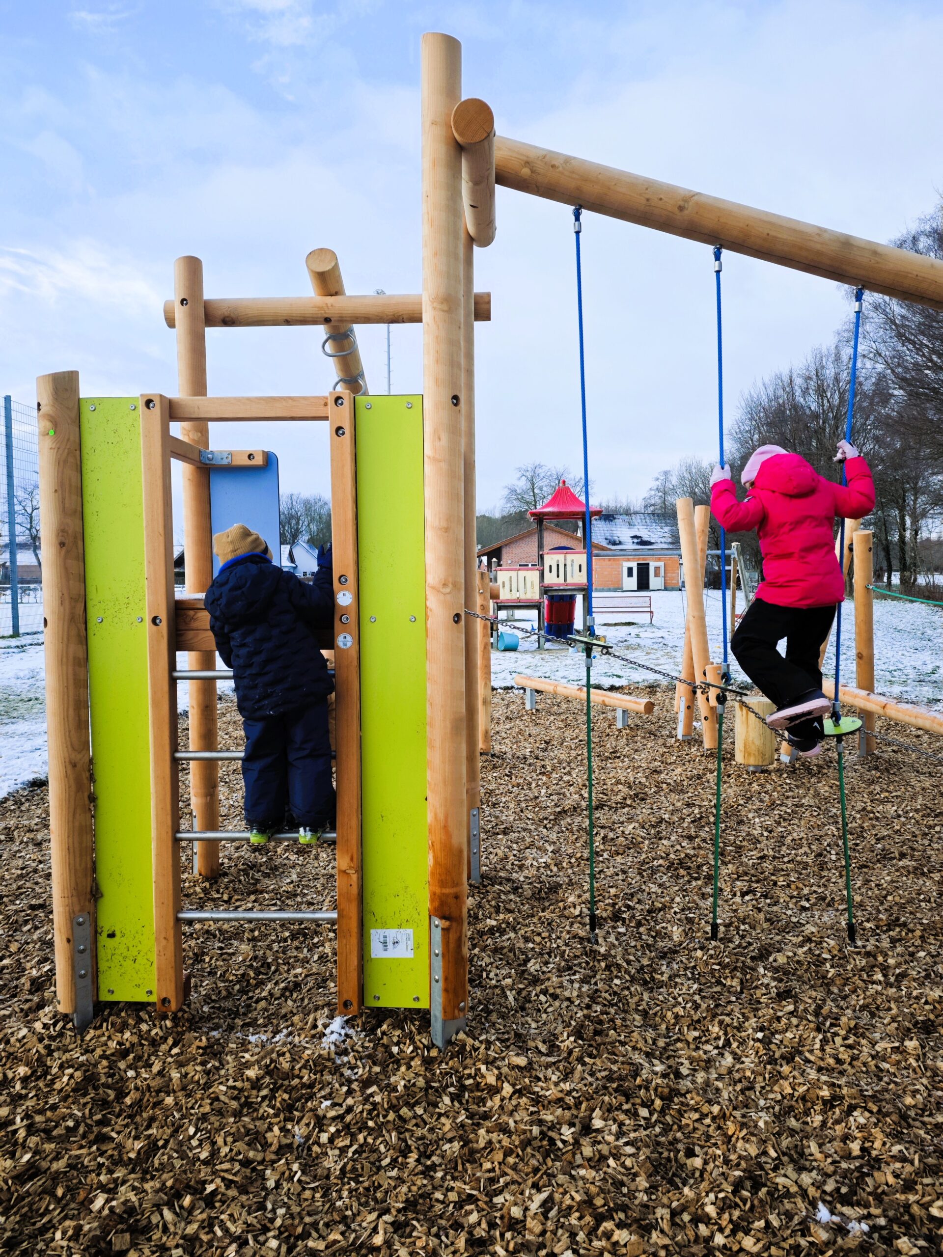 Wo sich bis vor wenigen Monaten überwiegend die kleinsten Dorfbewohner austoben konnten, lockt heute ein farbenfroher Kletterparcours auch die größeren Kinder zum Klettern und Spielen an.