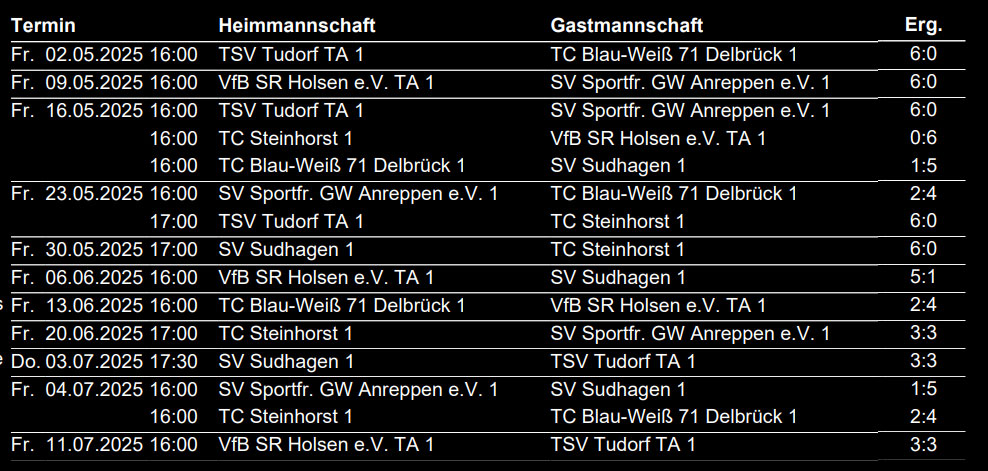 Erfahre hier mehr über die Aktivitäten im Herrentennis beim VfB Holsen!