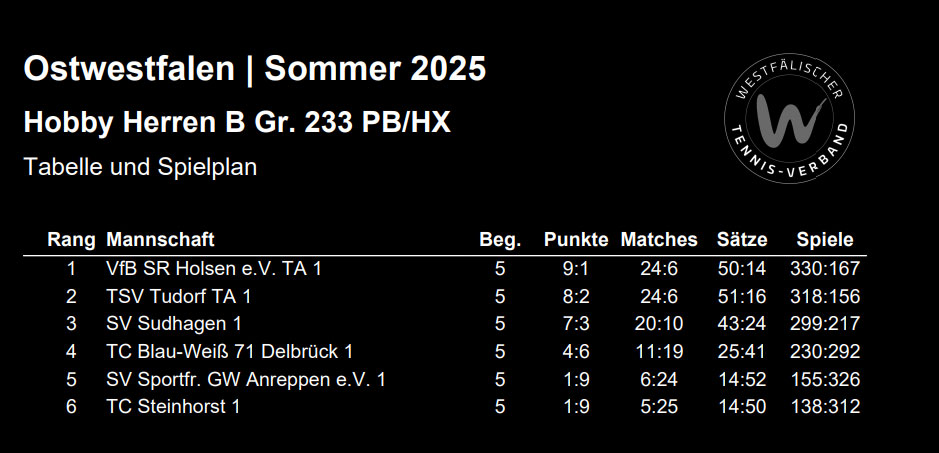 - Spielklasse 2025: Hobby Herren B Gr. 233 PB/HX